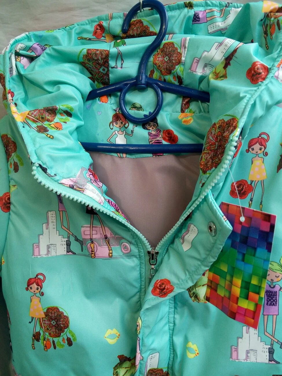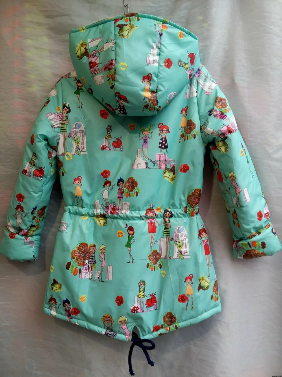 Подростковая парка для девочек,мятного цвета с рисунком. Материал-плащевка,наполнитель-150й синтепон,подклад-нейлон.Отличное качество материалов и пошива.