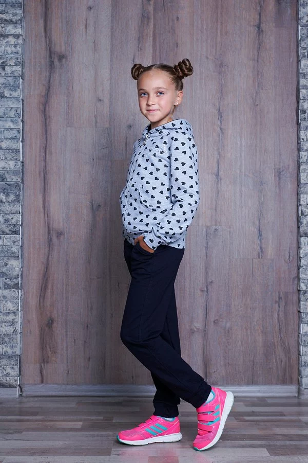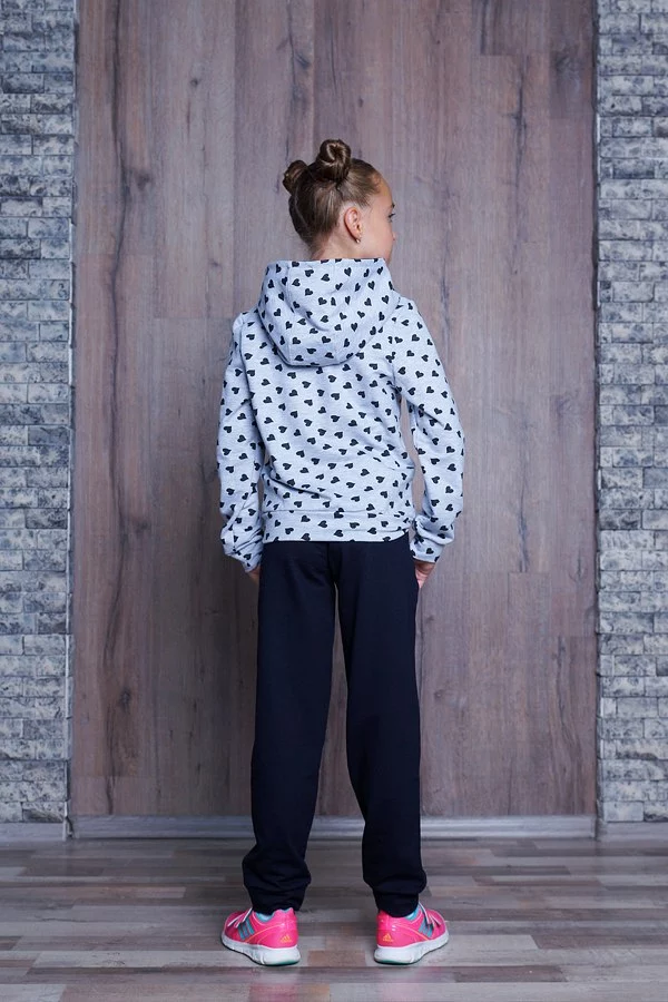 Спортивный подростковый костюм для девочек с капюшоном.Светло-серая кофта в горох с тёмно-синими штанами,отличного качества,материал-трикотаж двунитка.Этот костюм прекрасно подойдёт девочкам подросткам возрастом с 7 до 11 лет. Данную модель можно использовать как в повседневной жизни так и для активного занятия спортом на природе или в закрытом помещении.