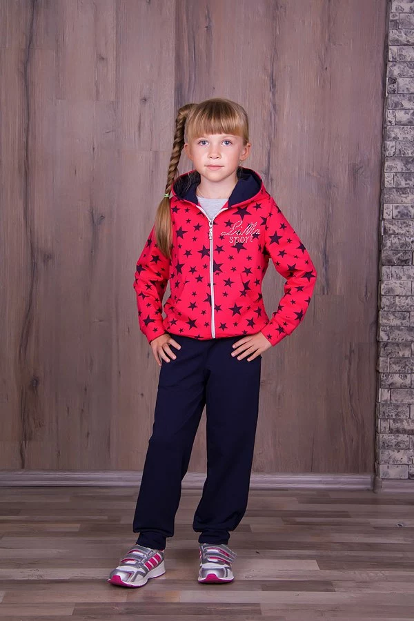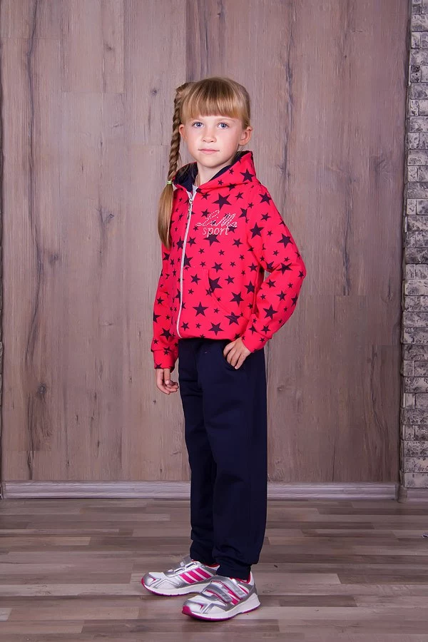Детский спортивный костюм для девочек с капюшоном.Кофта кораллового цвета в звёздочку и с тёмно-синие штаны,отличного качества,материал-трикотаж двунитка.Этот костюм прекрасно подойдёт детям с 3 до 6 лет. Данную модель можно использовать как в повседневной жизни так и для активного занятия спортом на природе или в закрытом помещении.