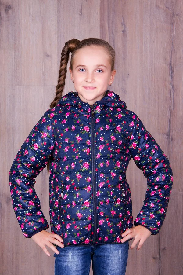Демисезонная подростковая ветровка для девочек,тёмно-синяя в мелкие розочки. Материал-плащевка,наполнитель-150й синтепон,подклад-флис.Отличное качество материалов и пошива.