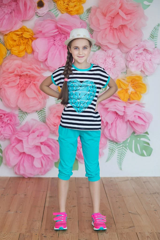 Летний костюм полоска с мятными бриджами