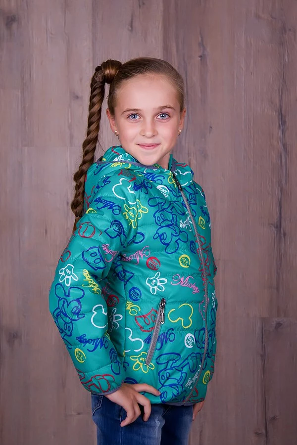 Демисезонная подростковая ветровка для девочек,мятного цвета в рисунок. Материал-плащевка,наполнитель-150й синтепон,подклад-нейлон.Отличное качество материалов и пошива.