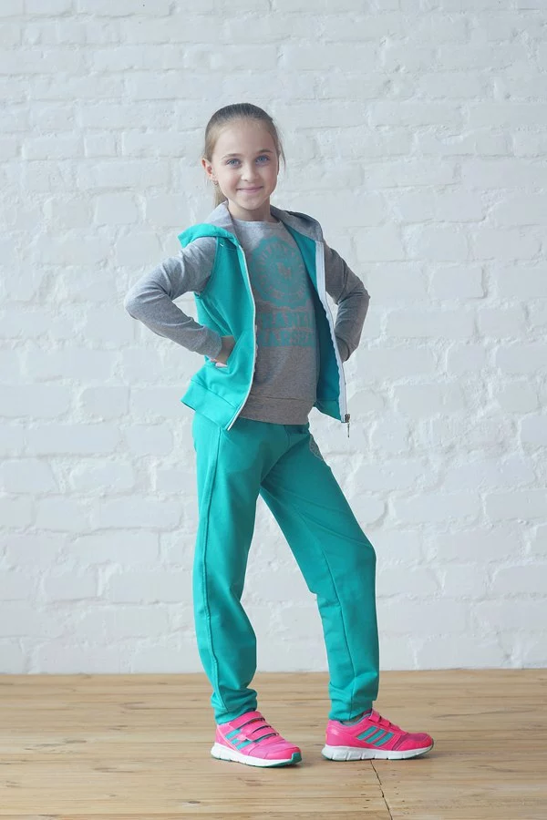 Спортивный костюм тройка (брюки,батник,жилетка).Материал- трикотаж двунитка,отличного качества,прекрасно смотрится на девочках подростках и юниорах,подходит для занятия спортом и для повседневного использования.